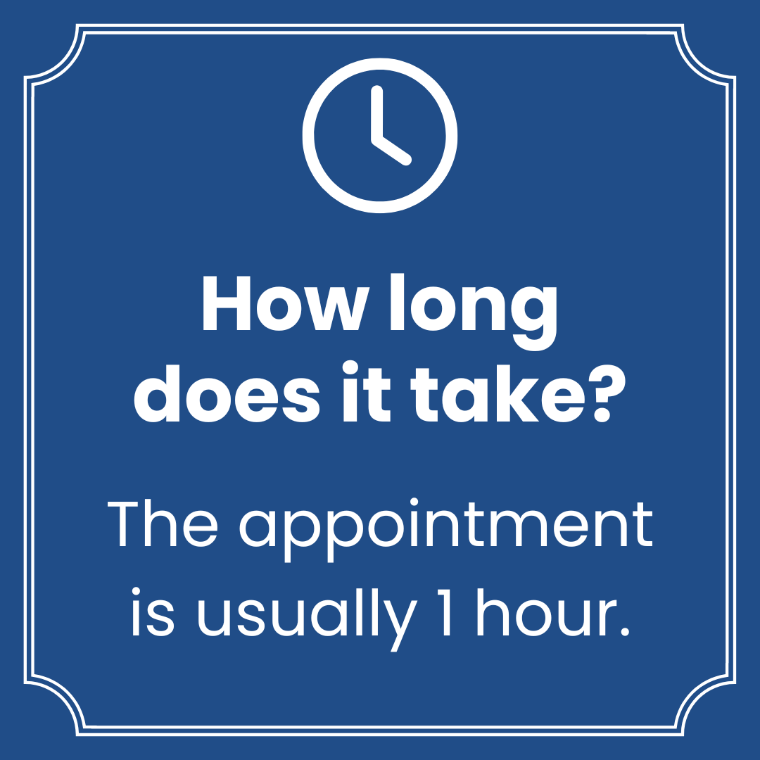 - The appointment usually lasts about one hour.